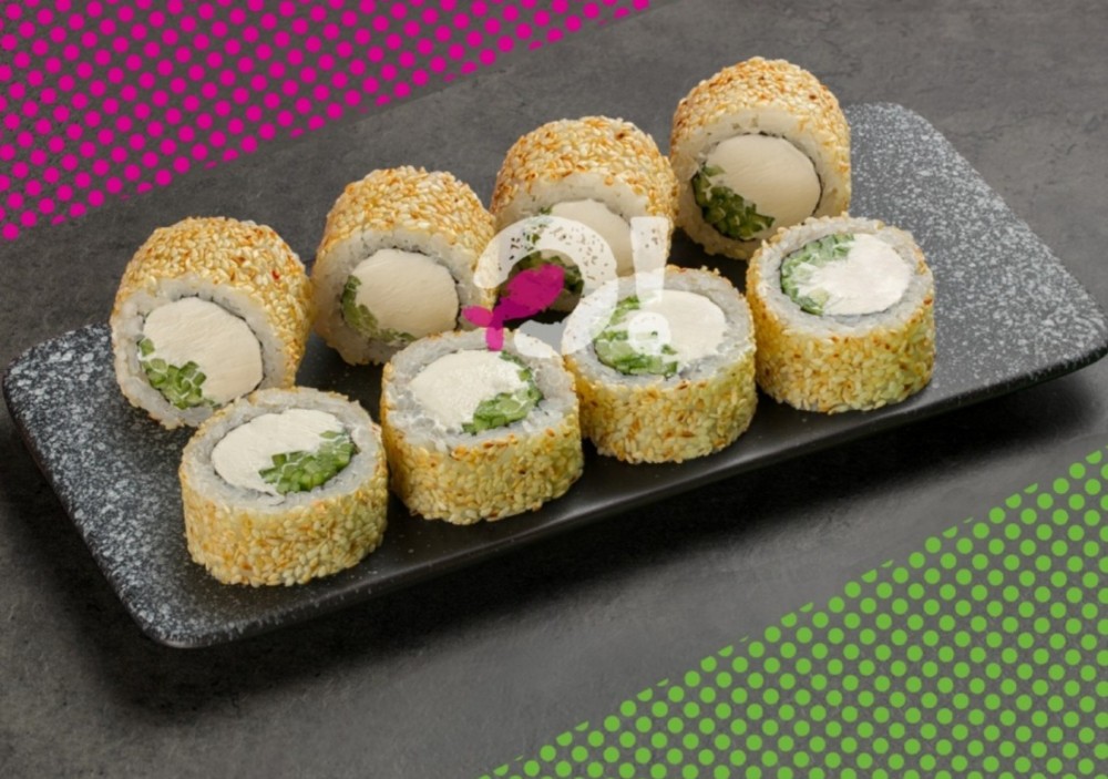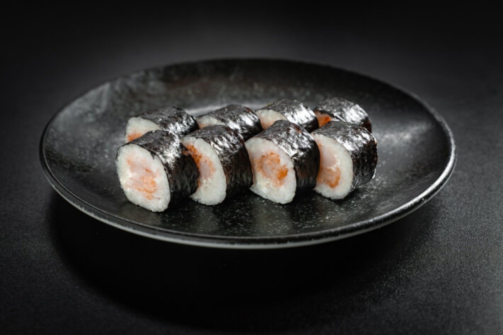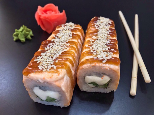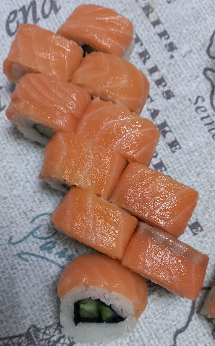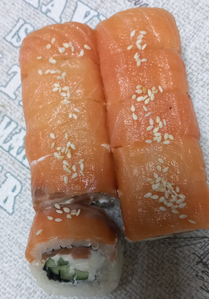 Нори, Лосось, рис, огурцы, кунжутное масло.